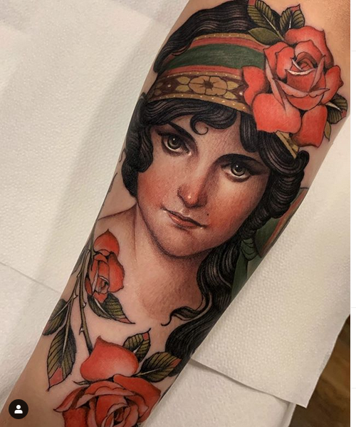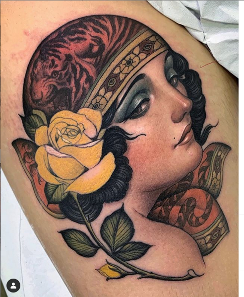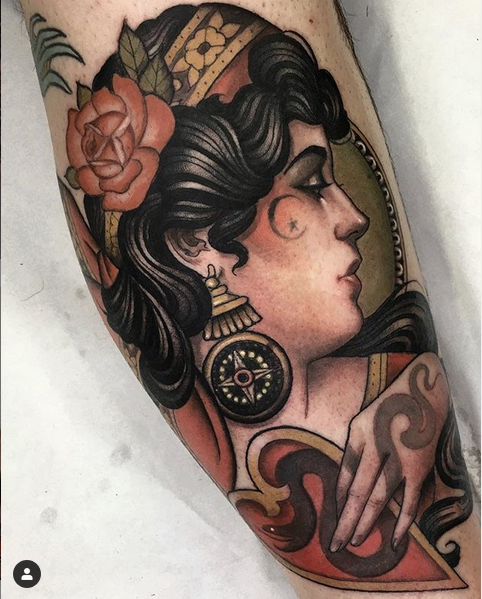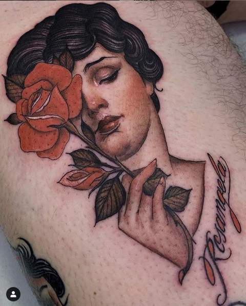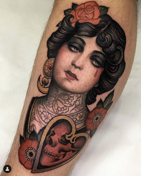 Podría decir que es un tatuaje tradicional reversionado con motivos más realistas … a mi estilo. Lo más importante para mi es que sea bonito y elegante. Pero como te digo estoy aún en un proceso. ..No sé qué acabaré haciendo.