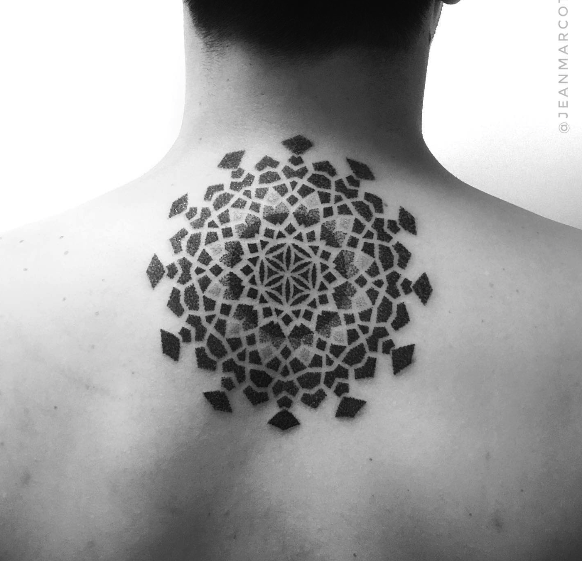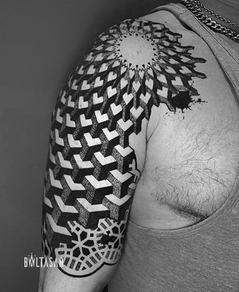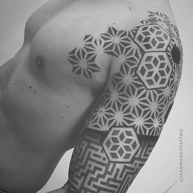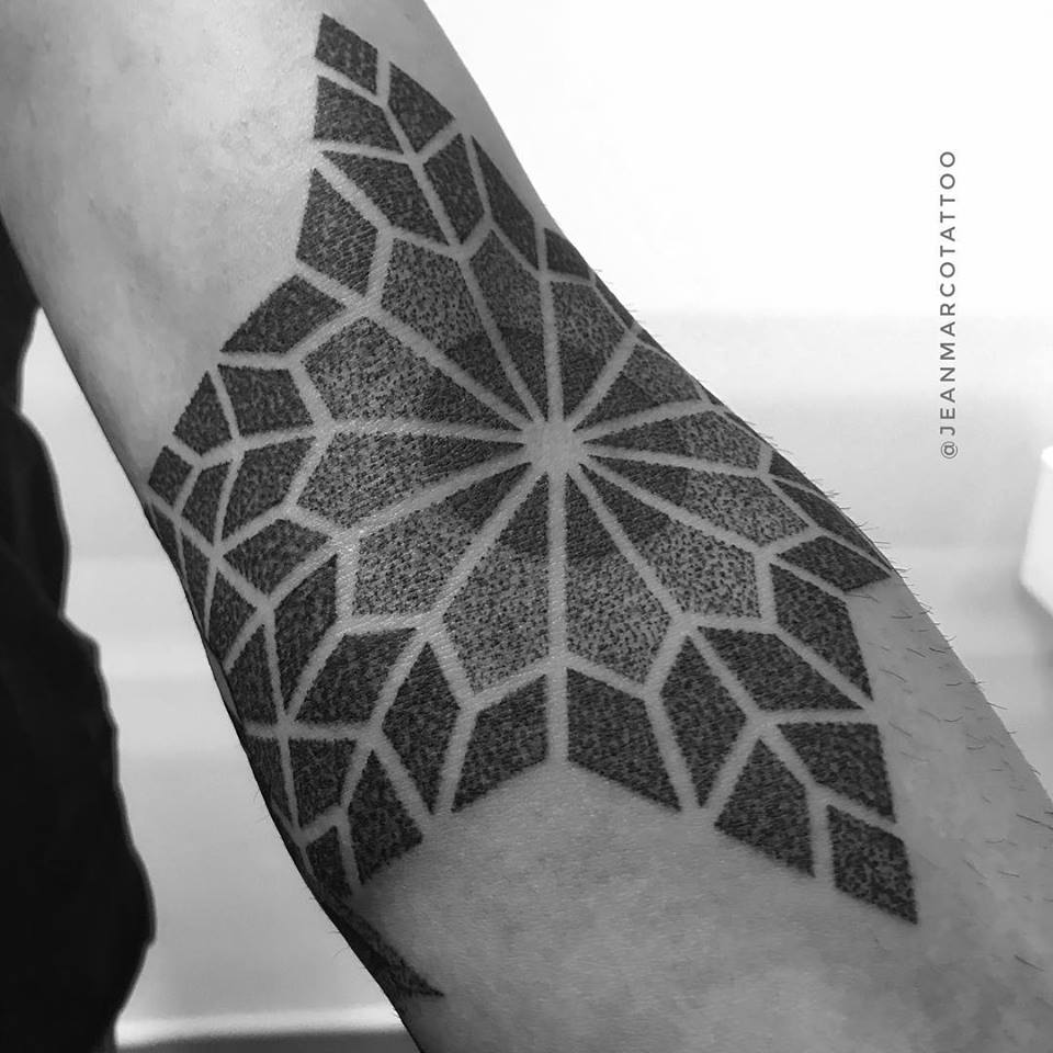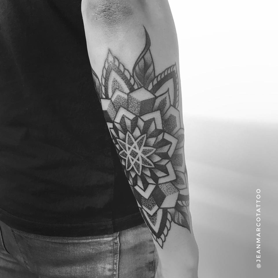 Tus trabajos se caracteriza por ser tatuajes Geométricos, minimalistas usando Laberintos, Hexágonos, Mandalas, elementos Tridimensionales, Patrones Geométricos y Psicodélicos para realizar un trabajo que parece tener movimiento..cuéntanos un poco sobre tu trabajo y como lo llevas a cabo.