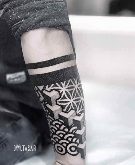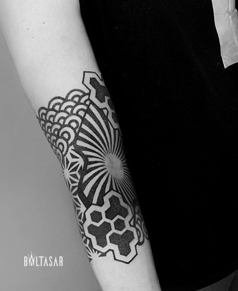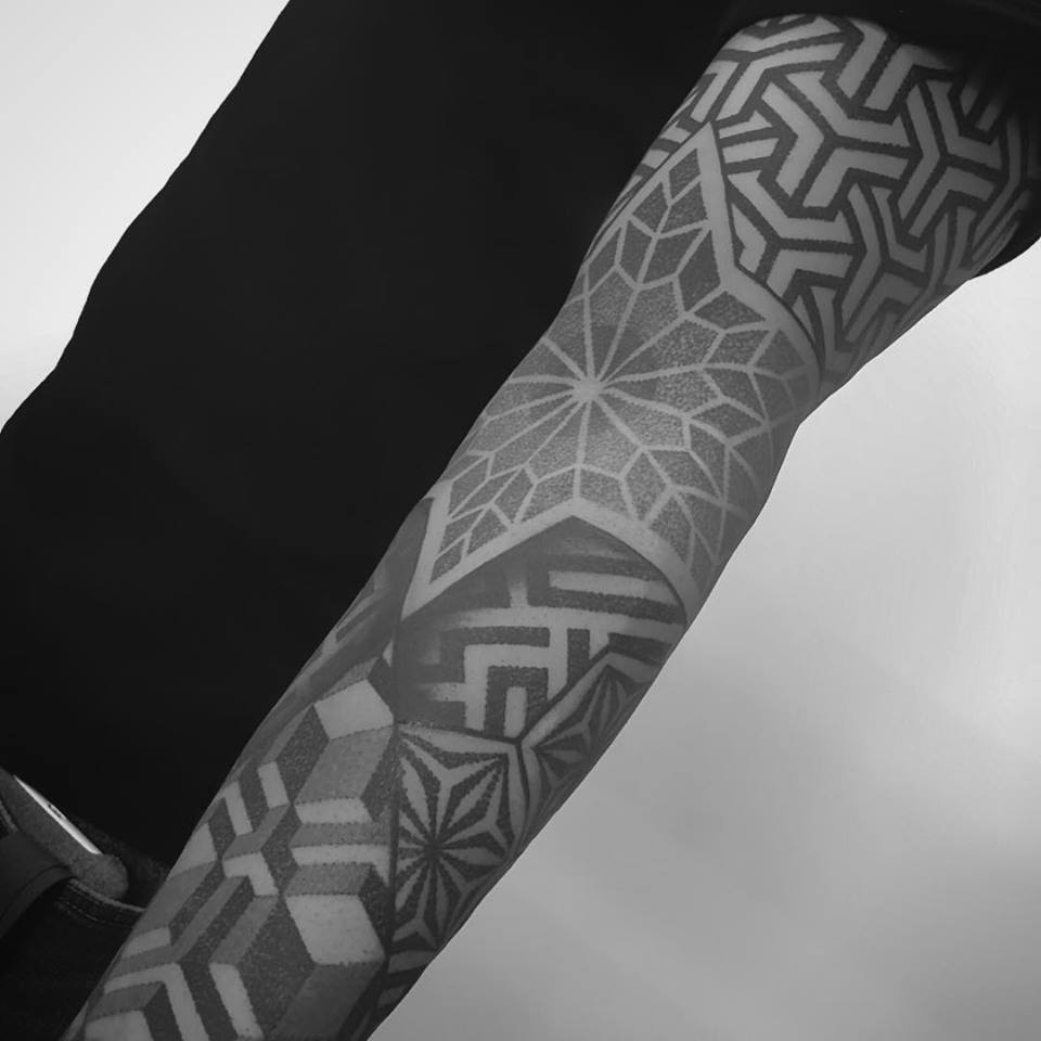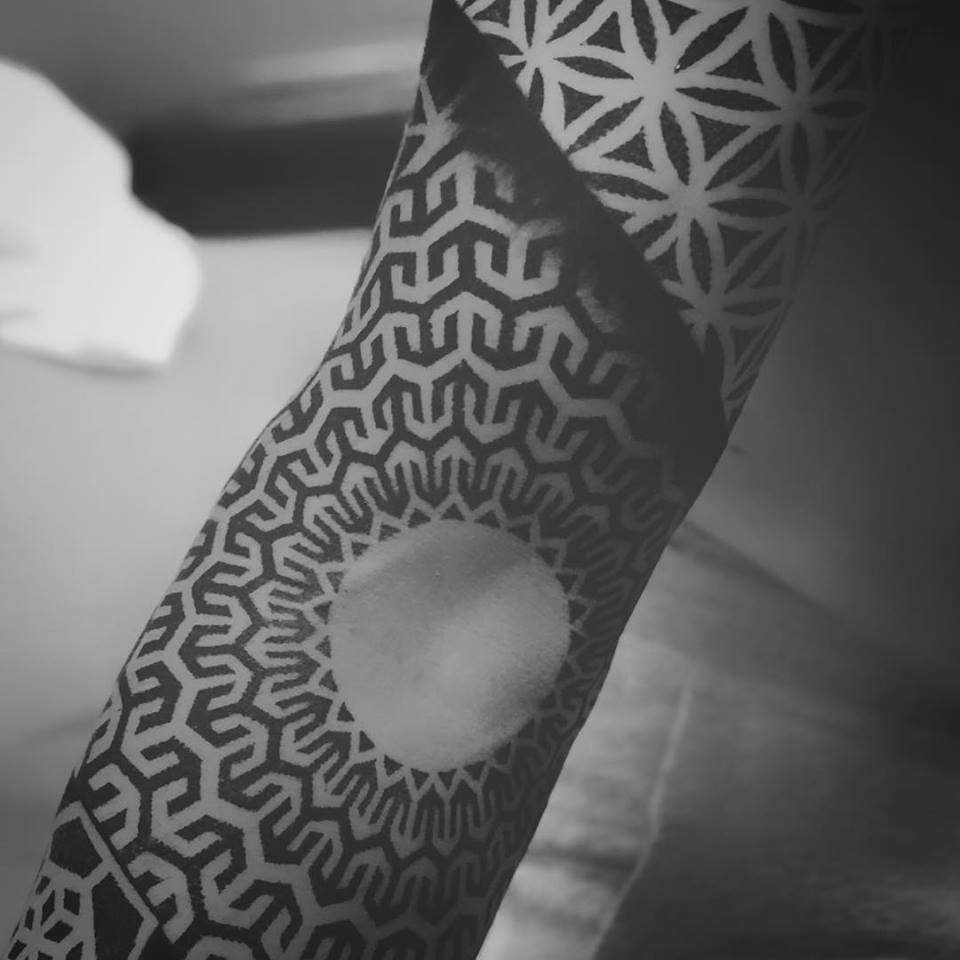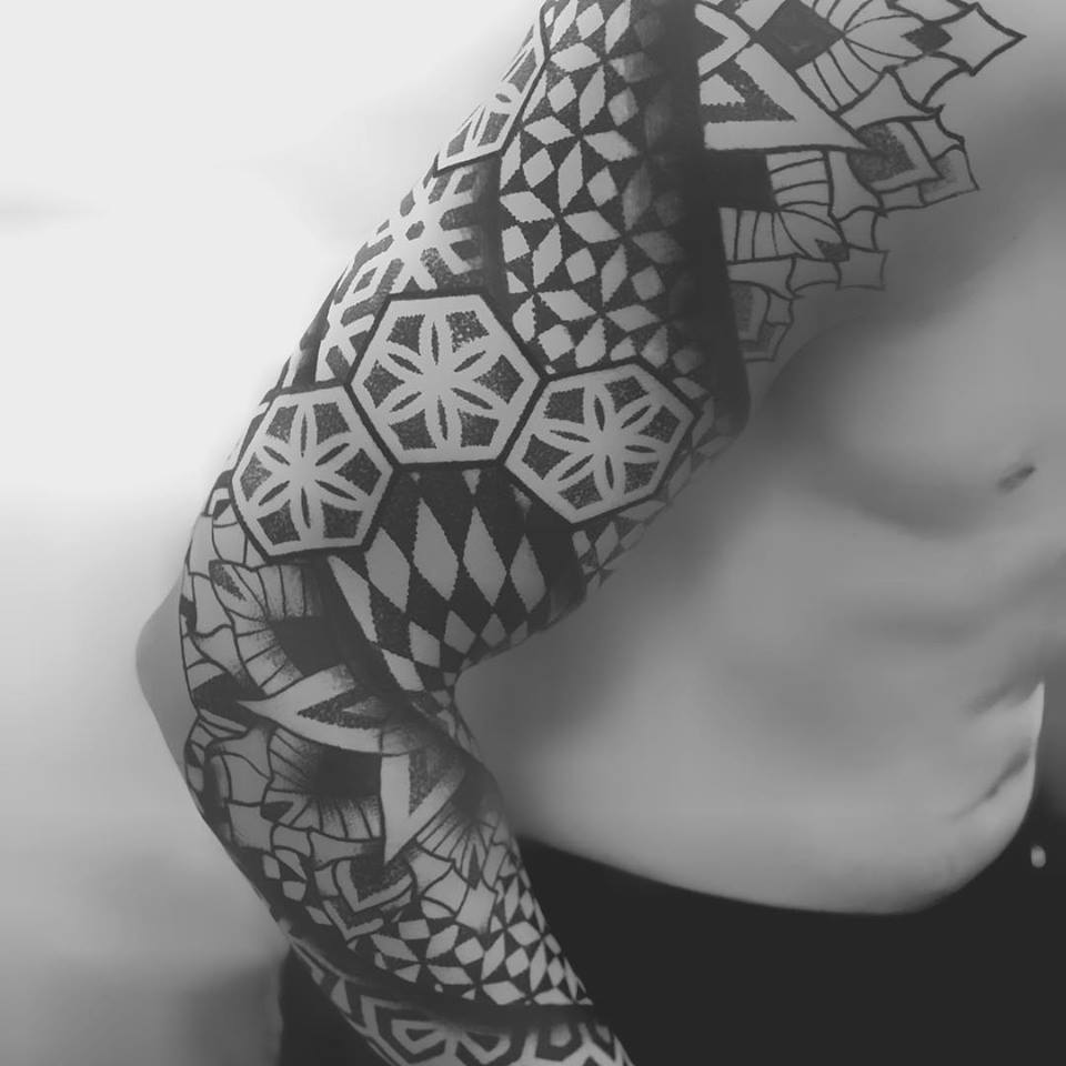 Normalmente me baso en la realización de formas, figuras y patrones geométricos inspirados en los sólidos platónicos y la geometría sagrada. Artistas como el estudio de tatuajes Black Ink Power son una buena inspiración para realizar mis composiciones.